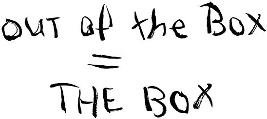 Een term die nog steeds veel wordt gebruikt is out-of-the-box-denken. Maar... als je out-of-the-box-denkt, dan denk je nog steeds uit aan the-box. Het is reactief van aard.
